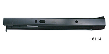 The rear floor seat supports are located just behind the rear floor pans. These important structural members should not be neglected when removing rusted steel. Danchuk # 16114 will work on the driver side of any 1955-1957 classic Chevy hardtop. Measures 25-5/8" x 3-3/8" x 3".
